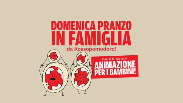 La domenica da Rossopomodoro ha un valore semplice, rilassarsi. Nei nostri ristoranti i grandi si godono un pranzo in tranquillità, i bambini giocano e si divertono con un'animazione pensata per loro.